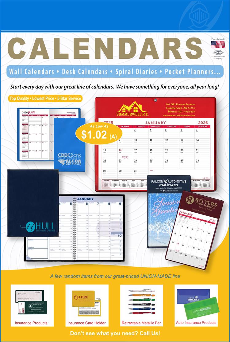 Amazing priced calendars - USA/Union made - Colors and styles that your clients use.