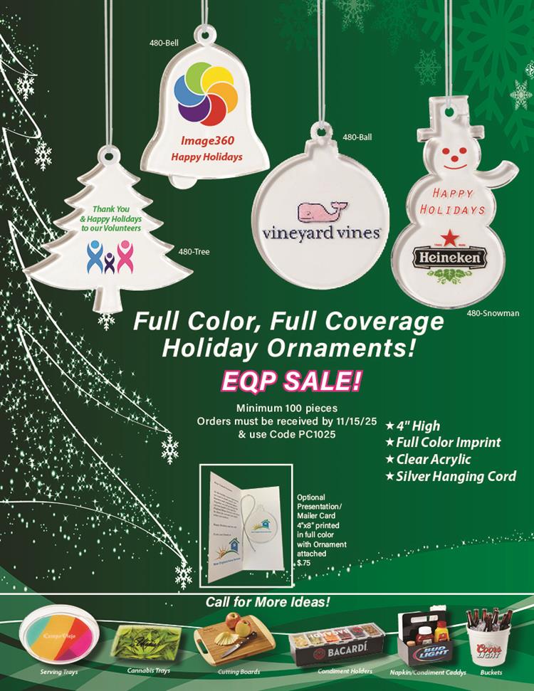 EQP Sale on Full Color Clear Acrylic Holiday Ornaments