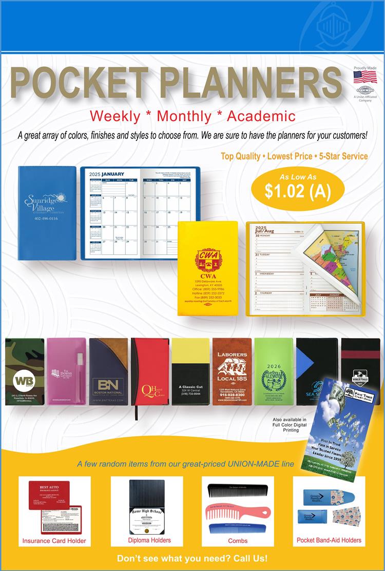 Amazing priced calendars - USA/Union made- Colors and styles that your clients use.