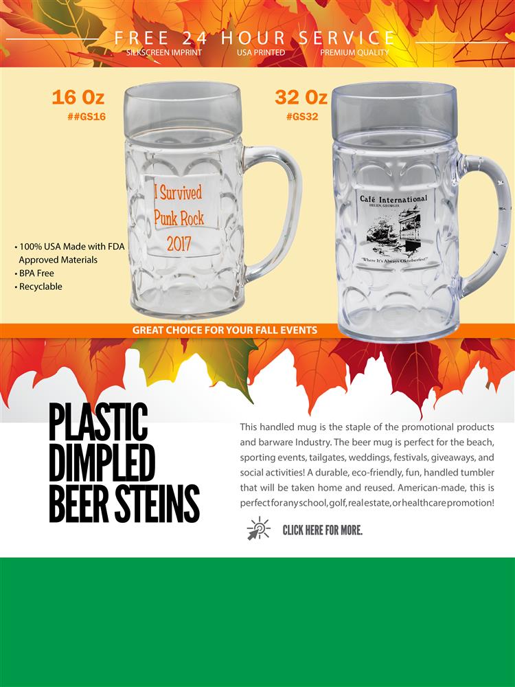Rugged USA Made Plastic German Beer Steins w/Free 24 Hr. Svc.