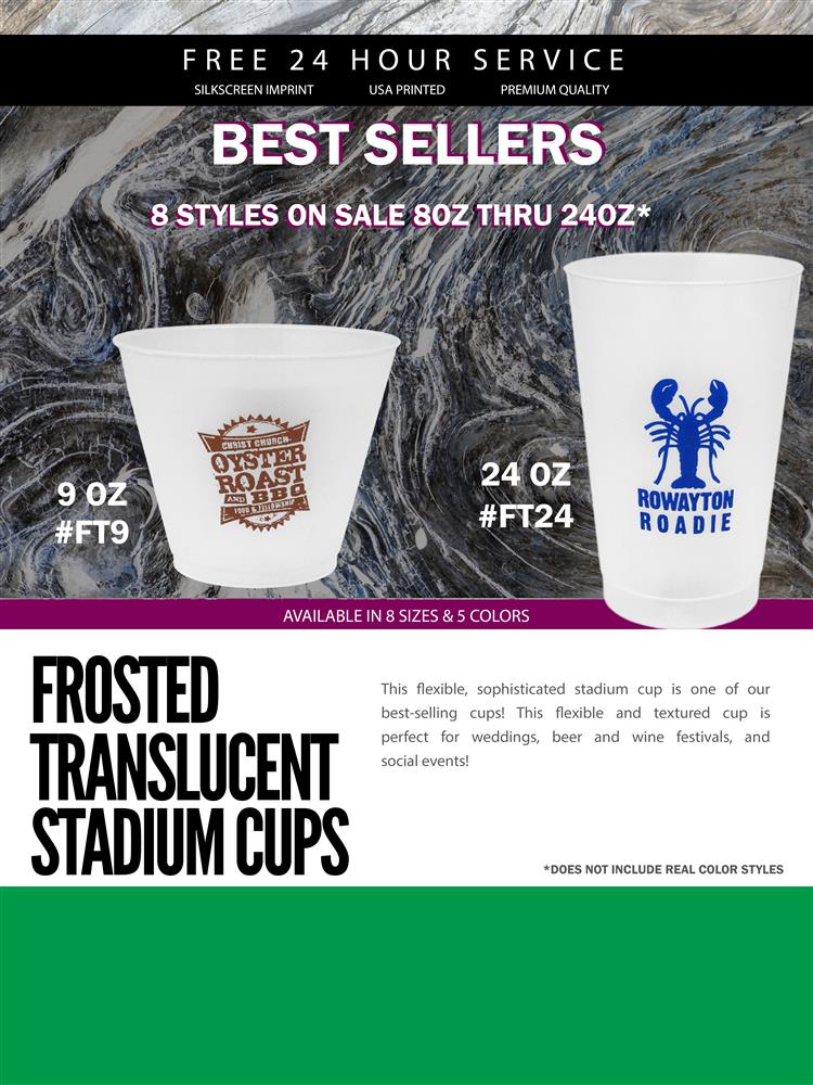 Sale on Frosted Translucent Stadium Cups w/Free 24 Hr. Svc.