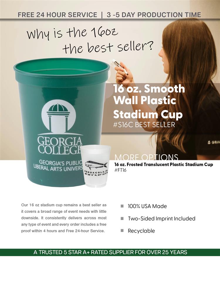 Most Popular Size Stadium Cup Sale w/Free 24 Hr. Svc.
