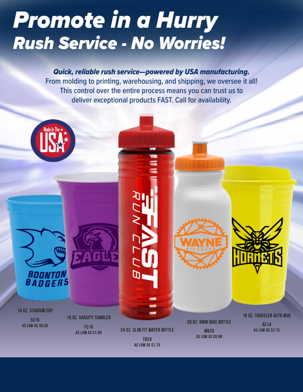 Deadline? No Problem. Made in the USA for quick turnarounds, dependable quality, and peace of mind.
