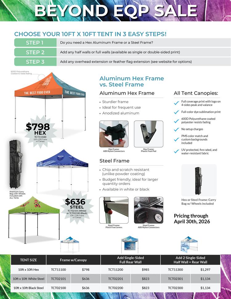 Below EQP Sale on Hex Aluminum & Steel 10'x10' Tents from DMP